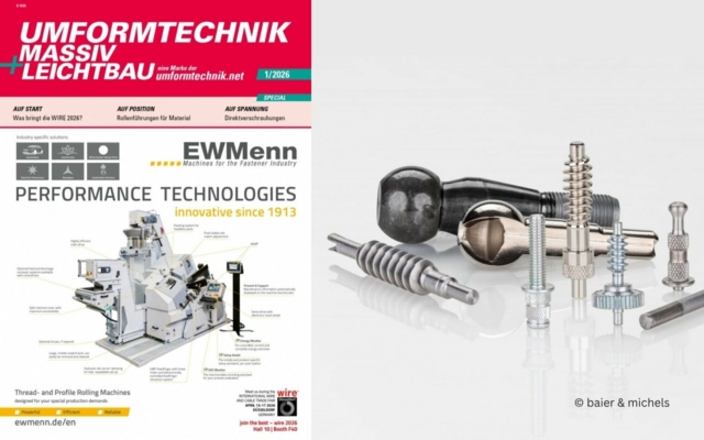 Pünktlich zur wire 2026 können Sie ab sofort in unserem neuen Special mit kostenfreiem Zugang mehr über Kaltmassivumformungsprozesse und Fastener-Technologien ... Von  Antje Schmidtpeter